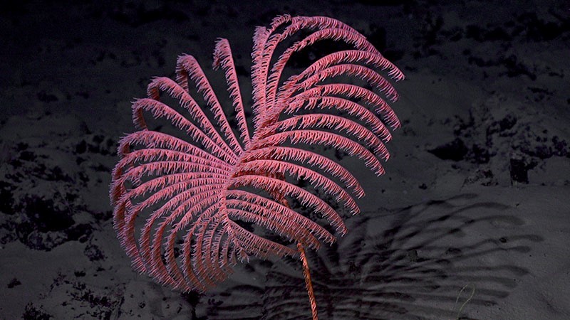 (Eumunida picta)From North Carolina south through the Florida Straits and into the Gulf of Mexico there are extensive deep water coral mounds, constructed primarily by the stony coral Lophelia pertusa. Off the Atlantic Coast of Florida there are also reefs of a similar species called Enallopsammia profunda, but these tend to be deeper than L. pertusa and are dominated by dead coral mounds rather than live coral. The depth reefs in this region ranges from an unusually shallow area off north Florida at approximately 200 m to > 800 m depth. Most corals need hard substrate for colonization and growth, and the carbonate platforms of the east coast and west Florida shelf provide abundant habitat for corals and other sessile fauna, both deep and shallow. The northern Gulf of Mexico however is primarily a soft sediment environment and hard substrate is limited to authigenic carbonate or exposed salt diapirs. The northern Gulf does not support the kind of extensive deep sea reef development found in the eastern Gulf or Atlantic, but there are sporadic locations of dense L. pertusa mounds. The northern Gulf also supports groves of large gorgonians and black corals, which provide habitat for numerous other invertebrates and fishes.